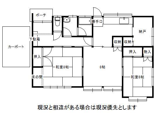 | 備考 | 現況有姿売買 カーポート有(1台) ※同業他社による客付け可 | ||